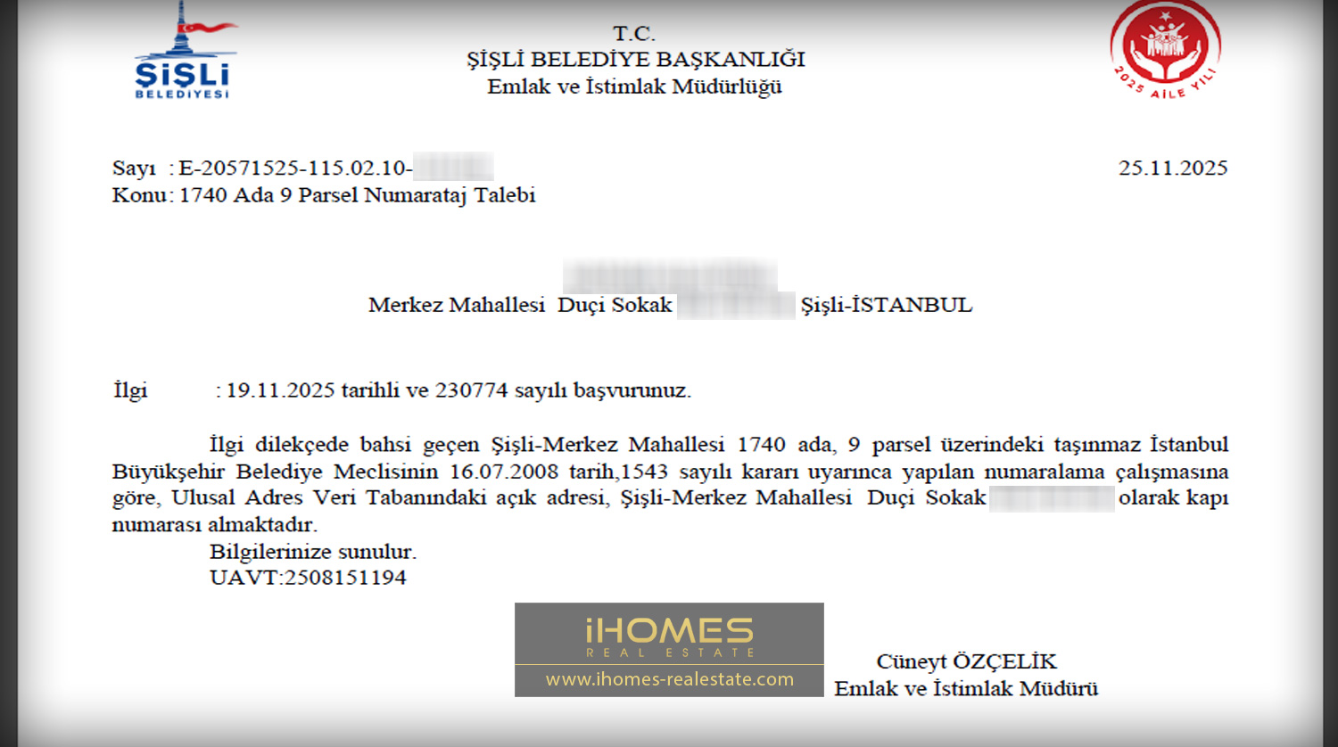 در ادامه نمونه برگه نوماراتاژ در ترکیه رو میبینید . این برگه از قسمت املاک شهرداری منطقه شیشلی صادر شده و کاملا قانونی و معتبره . نام و آدرس دقیق متقاضی روی برگه ثبت شده . خلاصه اطلاعات این برگه یعنی در پایگاه ملی آدرس دقیقاً همین شماره و واحد وارد شده و به عنوان آدرس رسمی شناخته میشه.