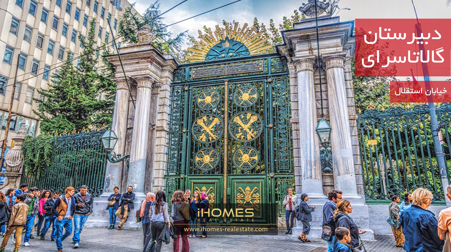 دبیرستان گالاتاسرای یکی از قدیمیترین و معتبرترین مراکز آموزشی ترکیهست که قدمتش به دوران عثمانی برمیگرده. این مدرسه درست وسط خیابان استقلال قرار گرفته و معماری کلاسیک و درِ تاریخی اون، تبدیل به یکی از نشونههای شاخص خیابون شده. اهمیت گالاتاسرای فقط آموزشی نیست؛ اینجا ریشه شکلگیری باشگاه معروف گالاتاسرای هم محسوب میشه و برای ترکها ارزش هویتی خاصی داره.